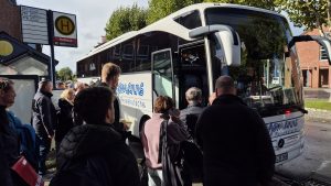 Die Teilnehmer der Exkursion steigen in den Bus ein