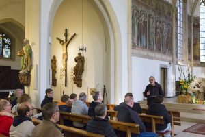 Sebastian Schritt erläutert die Baugeschichte von St. Brictius in Schöppingen